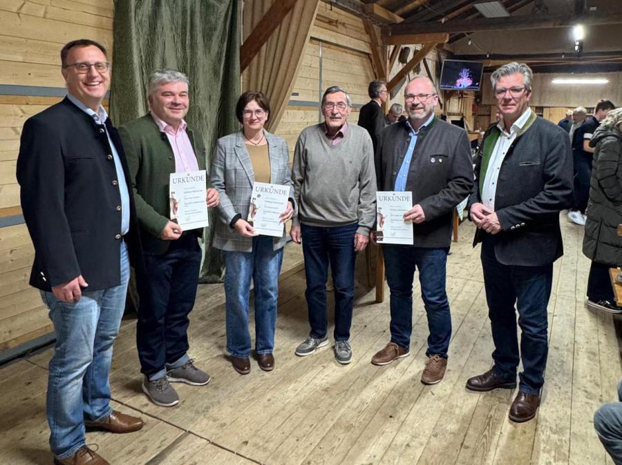 Für ihre langjährige Treue zum Verein wurden anschließend eine Reihe verdienter Mitglieder geehrt. So wurden Irmgard Breimaier, Hans-Nepomuk Brichta, Christian Saxinger, Christine Scharnreiter, Franz Scharnreiter, Karola Schmid, Max Thoma und Maria Wagner jeweilig für ihre 25-jährige Vereinsmitgliedschaft mit der Silbernen Ehrennadel des Vereins ausgezeichnet. Seit 40 Jahren Mitglied im Verein sind Wilhelm Brandl, Ingrid Dangl, Georg Hackl, Josef Heißenhuber, Klaus Heißenhuber, Kurt Heißenhuber, Max Heißenhuber, Helmut Pfisterer, Josef Plank, Helmut Pfisterer und Michael Weiderer. Sie wurden von Vorsitzendem Weiß und Ehrenvorsitzendem Rösch mit der Goldenen Ehrennadel geehrt.