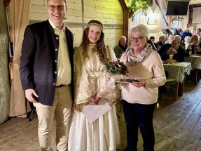 Los ging es – nach der Einstimmung bei Glühwein und Lagerfeuer vor dem Bruckstadl – mit dem besinnlichen Teil. Vorstandsmitglied und Stadträtin Sabine Bernauer sorgte mit weihnachtlichen, bairischen Geschichten für die richtige Einstimmung bei Kerzenschein und Mandarinen auf den dekorierten Tischen. Auch das Plattlinger Christkindl besuchte die Weihnachtsfeier, bevor bei der Tombola, der Verlosung und der Christbaumversteigerung wieder zahlreiche Preise und Besonderheiten ergattert werden konnten. Ein Bläserquartett der Plattlinger Berufsfachschule für Musik sorgte mit traditionellen sowie modernen Weihnachtsliedern für die musikalische Umrahmung des Abends.
